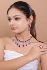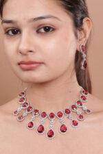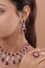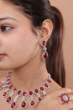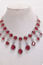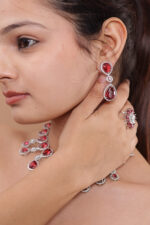 Be the first to review “Drop Earrings with teardrop and oval ruby-red stones, encased in a halo of white stones” Cancel reply